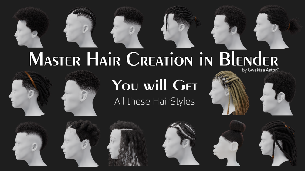 Master Hair making in Blender, the study guide for different hair style will be uploaded 3 times a month. Will be breaking down blender setting for creating realistic and appealing hair also styling hair from Gentlemen hair style to Celebrity Hair style.